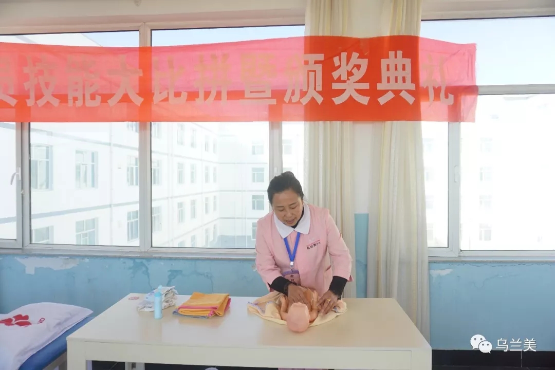 本次技能大比拼的主要比賽內(nèi)容為:母嬰護(hù)理組的新生兒撫觸、產(chǎn)后綁腹帶;病人陪陪組的壓瘡護(hù)理、測(cè)脈搏及血壓。母嬰護(hù)理組8人,病人陪護(hù)組9人,共計(jì)17人參賽。