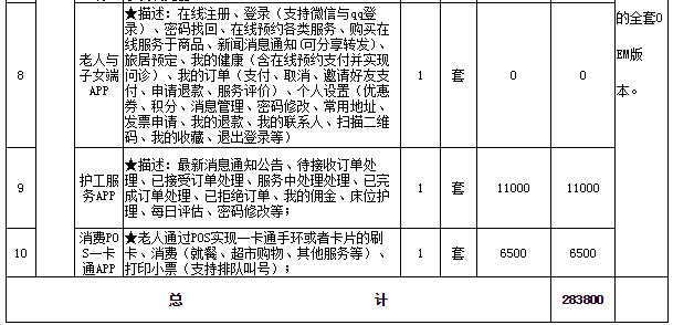 7.軟件與可穿戴設(shè)備需要與采購方目前使用的《智慧居家養(yǎng)老服務(wù)平臺》進(jìn)行無縫對接,且能實現(xiàn)兩套平臺融合共享、即居家養(yǎng)老的老人和入住養(yǎng)老機構(gòu)的老人檔案信息共享、服務(wù)共享、賬戶共享,能極大方便居家的老人一鍵入住到養(yǎng)老機構(gòu)(提供承諾書及對接方案)。平臺對接產(chǎn)生的所有費用由中標(biāo)方承擔(dān)、采購方負(fù)責(zé)協(xié)調(diào)提供《智慧居家養(yǎng)老服務(wù)平臺》對接接口。